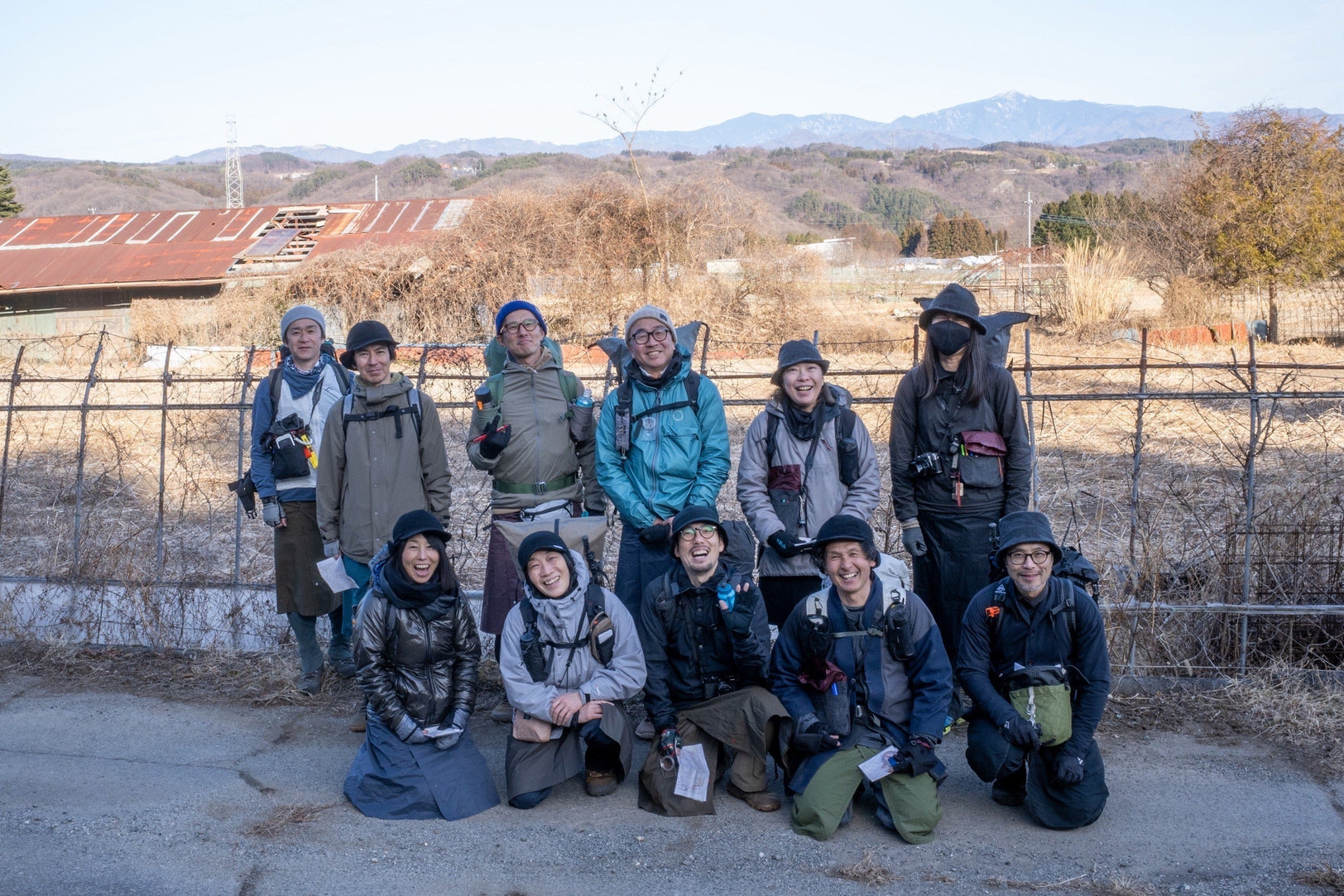 日当たりはよいものの、空気は鋭く冷たく、参加者の皆さんは早々に凌を代表するアイテム、アグラスカートやツユハラヒを装着。