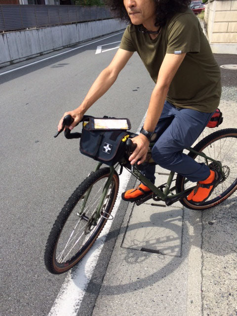 サドルの上からでもしっかりチェックしたい地図や携帯電話を、目からうろこのアイディアで、ここにあったら確かに便利!というところに装着できるケースや、バッグとフレームの間のデッドスペースを活用したポーチもセットするなど、随所にRawLow Mountain Worksらしい他にはないギミックが散りばめられています。